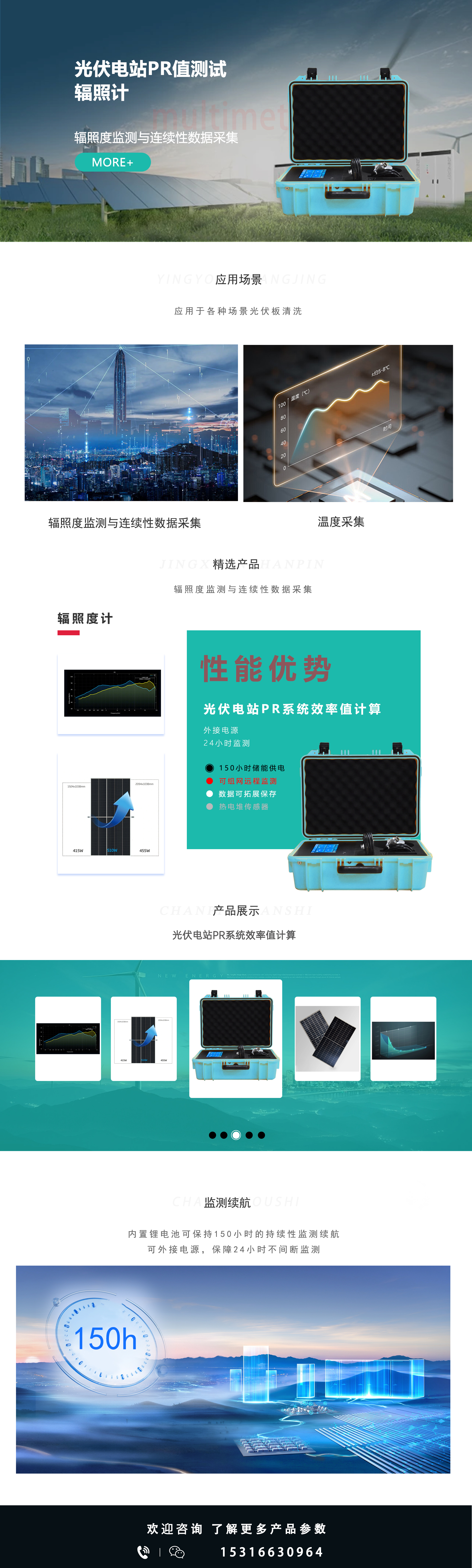 辐照计应用于辐照度检测与连续性数据采集,光伏电站PR系统效率值计算等领域,高效性能可150小时储能供电,外接电源实现24小时监测。